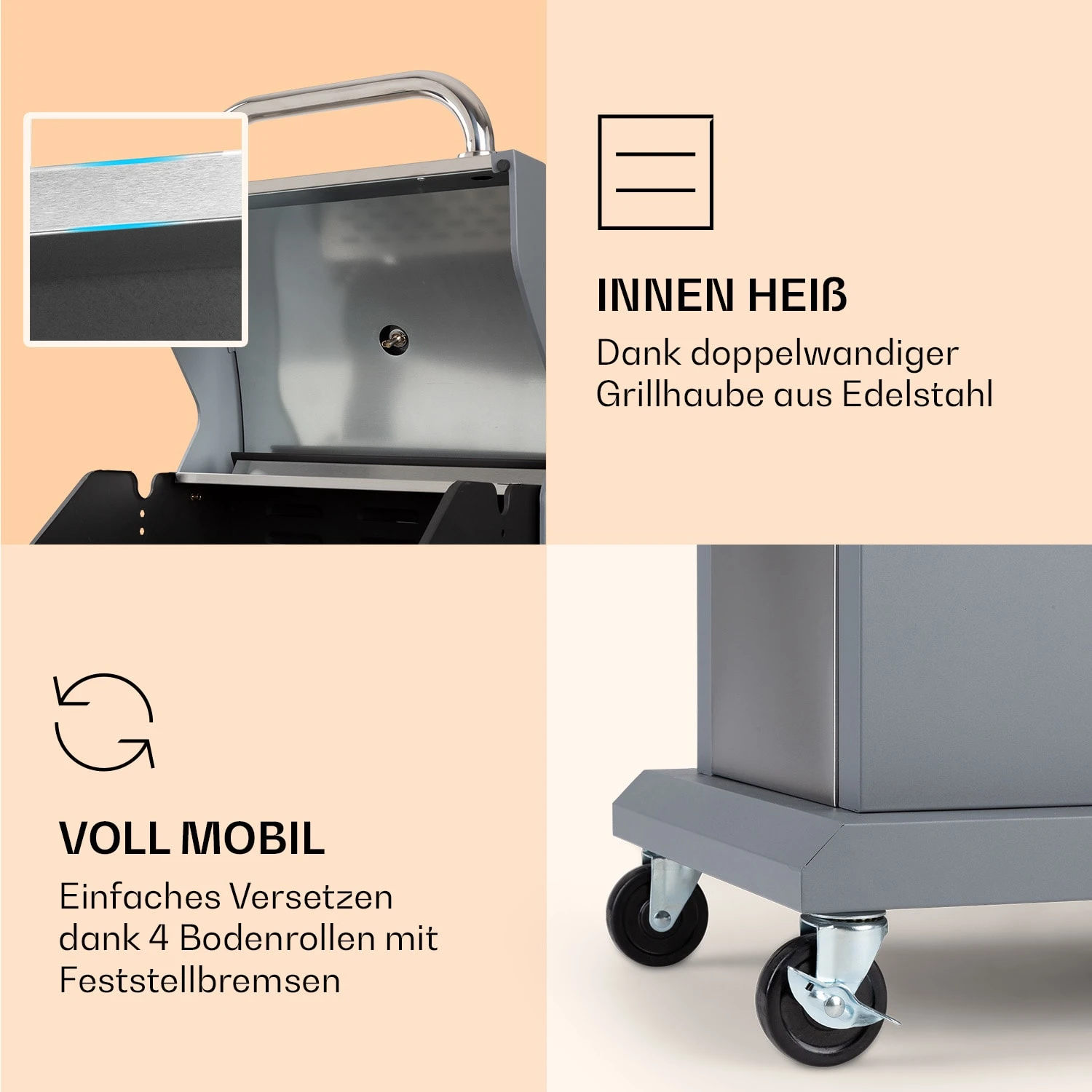 Lucifer 2 Gasgrill 2 X 3,6 KW Brenner 45x45cm Grill Edelstahl Mobil